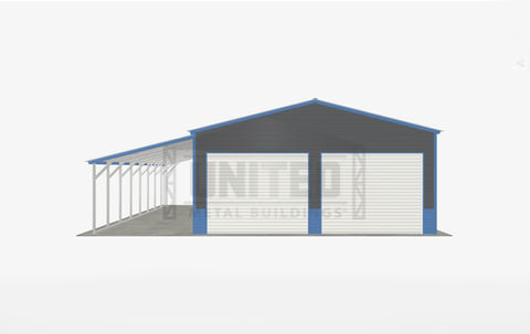 24x30x10/7 2-Car Metal Garage with Side Lean-To